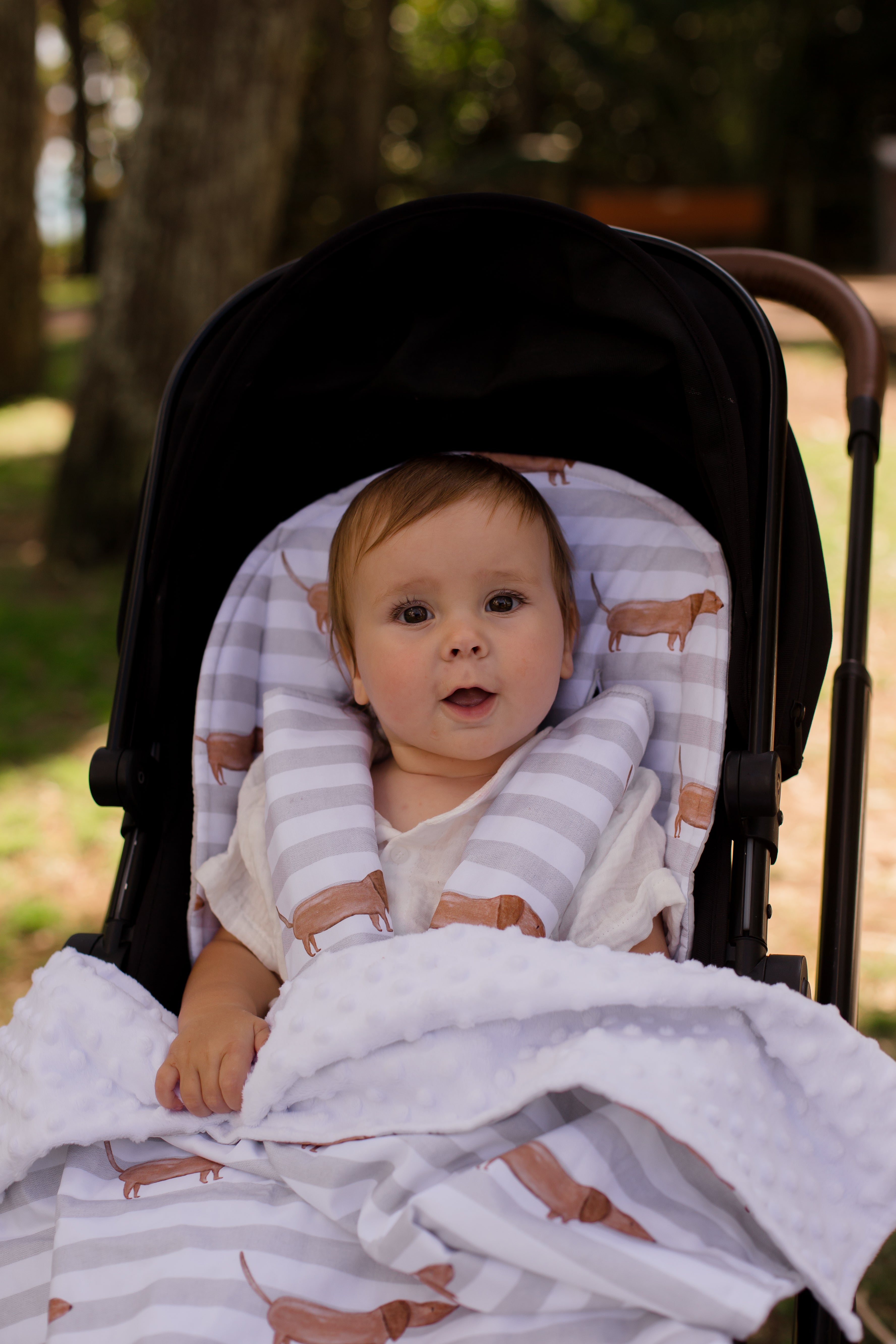 Bambella Snuggle Blankets are perfect for providing extra warmth or comfort on the go. The are super snuggly, featuring 100% cotton fabric on one side and a soft minky dimple fabric on the other. Our blankets are lightweight and compact, simply roll one up and toss it into your nappy bag – and you'll have an instant source of comfort, warmth, or a quick change mat whenever you need it!