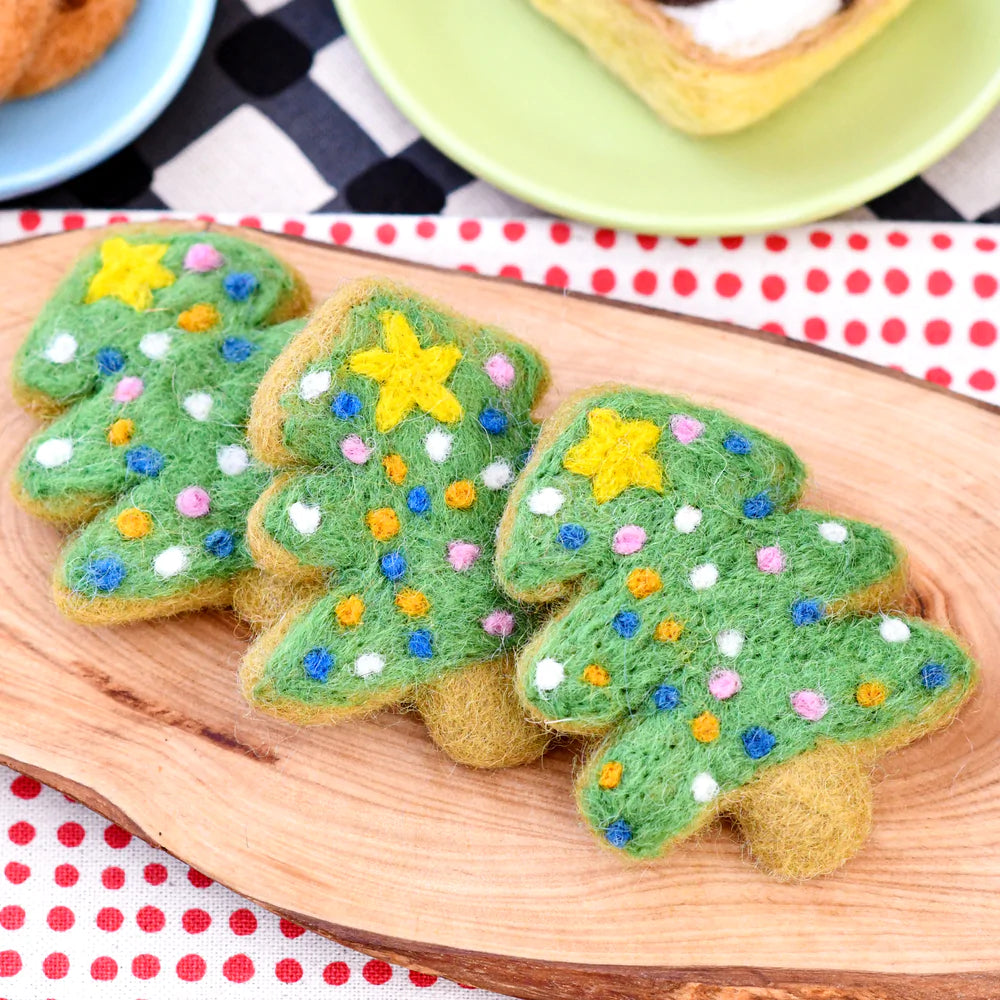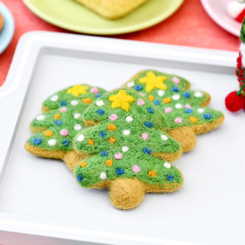 This listing is for 1 Christmas cookie. Each cookie has been meticulously needle- felted with dense wool that has been dyed with non-toxic colours, making it safe for play.