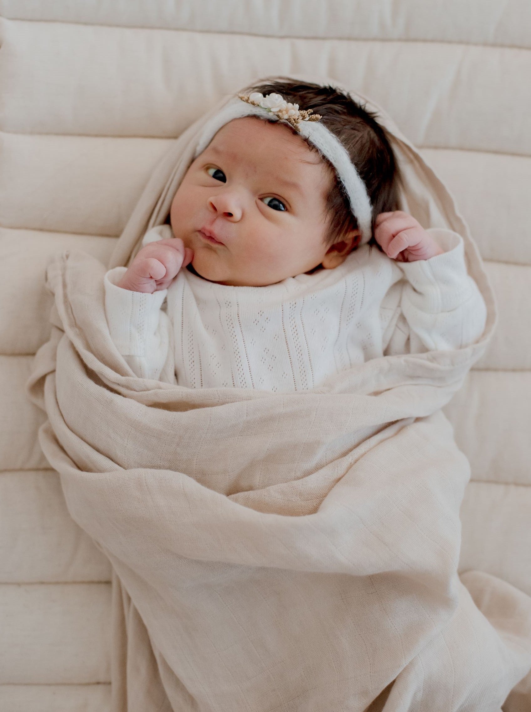 Bamboo Cotton Muslin Swaddle Wrap - Vanilla