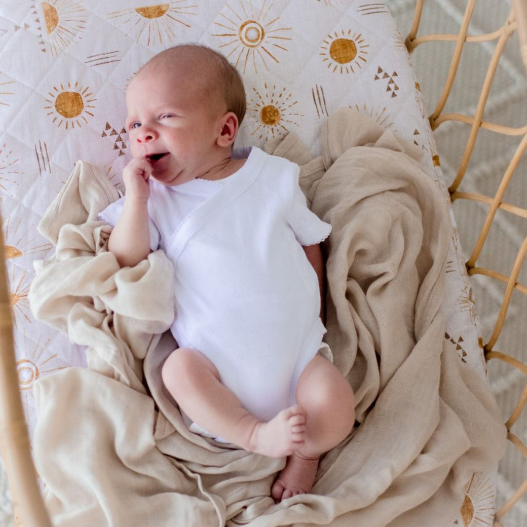 Swaddling is a time-tested method to soothe your baby, mimicking the snug sensation of the womb. Wrapping your little one creates a cozy and secure feeling, helping your baby transition to sleep more easily and peacefully. Our non-stretchy muslin wraps swaddle your baby securely, providing a sense of safety and warmth. The also assist sleep by restricting the startle reflex, that can wake your little ones.