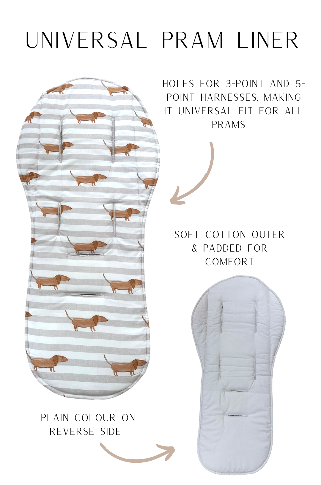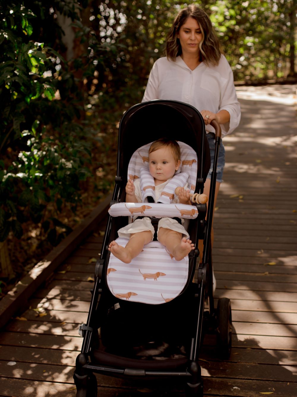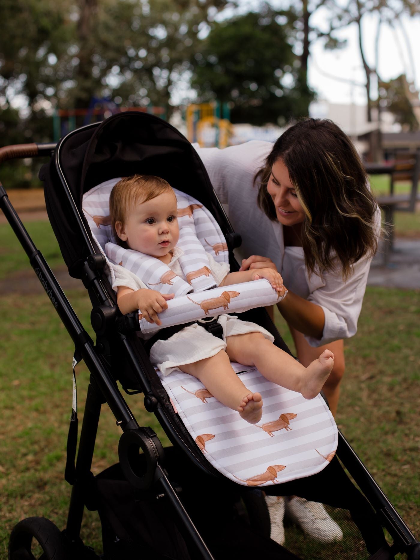 Keep your pram pristine and your little one comfy with a Bambella Designs universal fit pram liner. Our luxe padded design not only protects your pram, but also assists in absorbing spills or mess. The soft cotton outer makes them suitable for all seasons, providing the perfect combination of breathability and comfort. The liner also has side wings to offer added support for your baby, making them perfect for naps on the go!