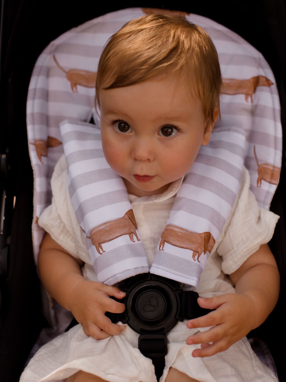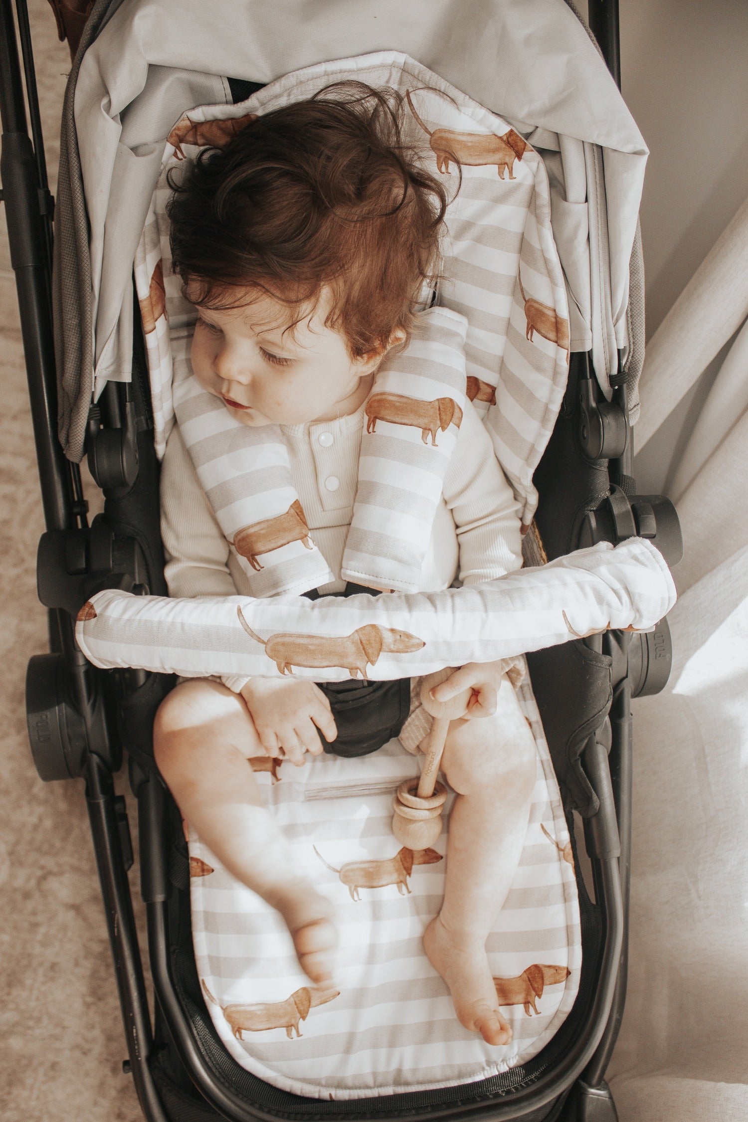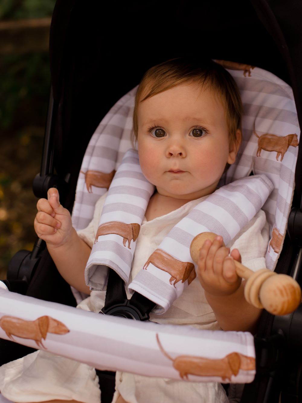 Keep your pram pristine and your little one comfy with a Bambella Designs universal fit pram liner. Our luxe padded design not only protects your pram, but also assists in absorbing spills or mess. The soft cotton outer makes them suitable for all seasons, providing the perfect combination of breathability and comfort. The liner also has side wings to offer added support for your baby, making them perfect for naps on the go!