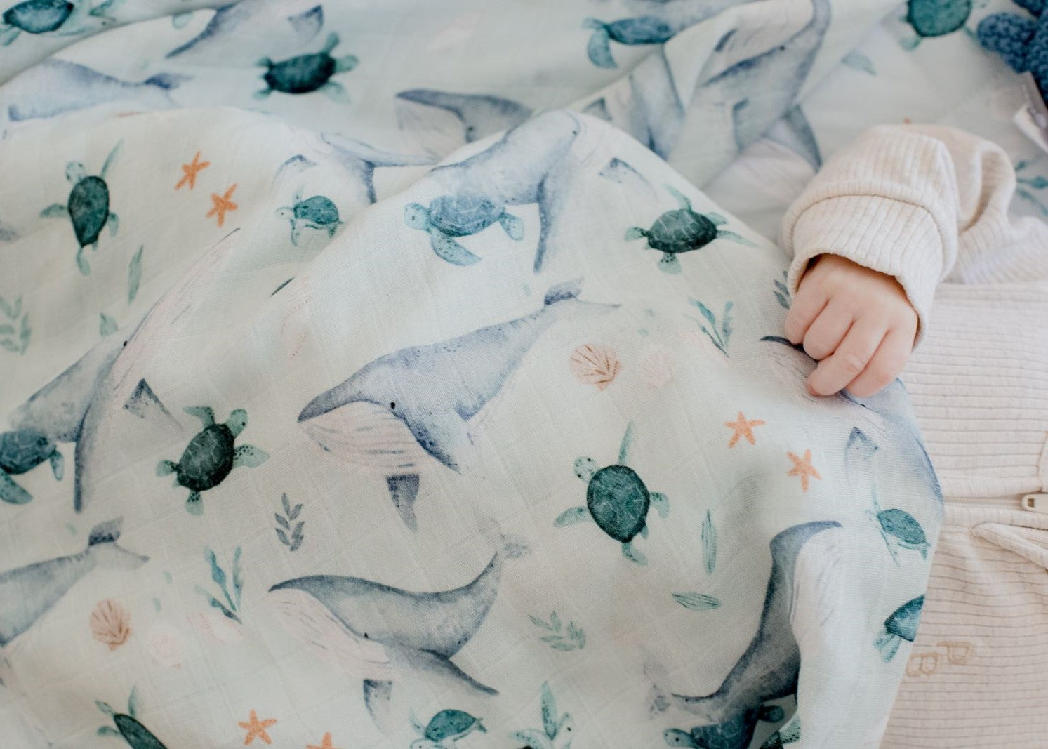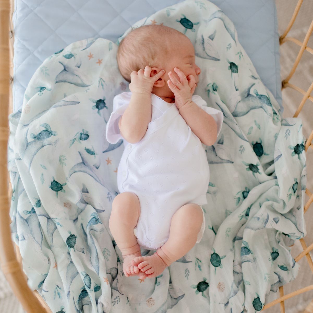 Bamboo Cotton Muslin Swaddle Wrap - Turtle Bay